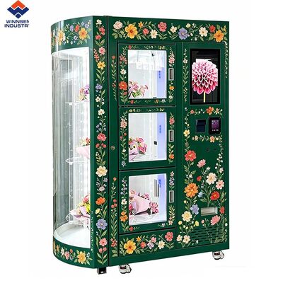 Ten obracający się automat do sprzedaży kwiatów jest wyposażony w wbudowany system chłodzenia i nawilżania.tworzenie stałego środowiska o niskiej temperaturze i wysokiej wilgotności, aby 24 bukiety były świeże dłużej.